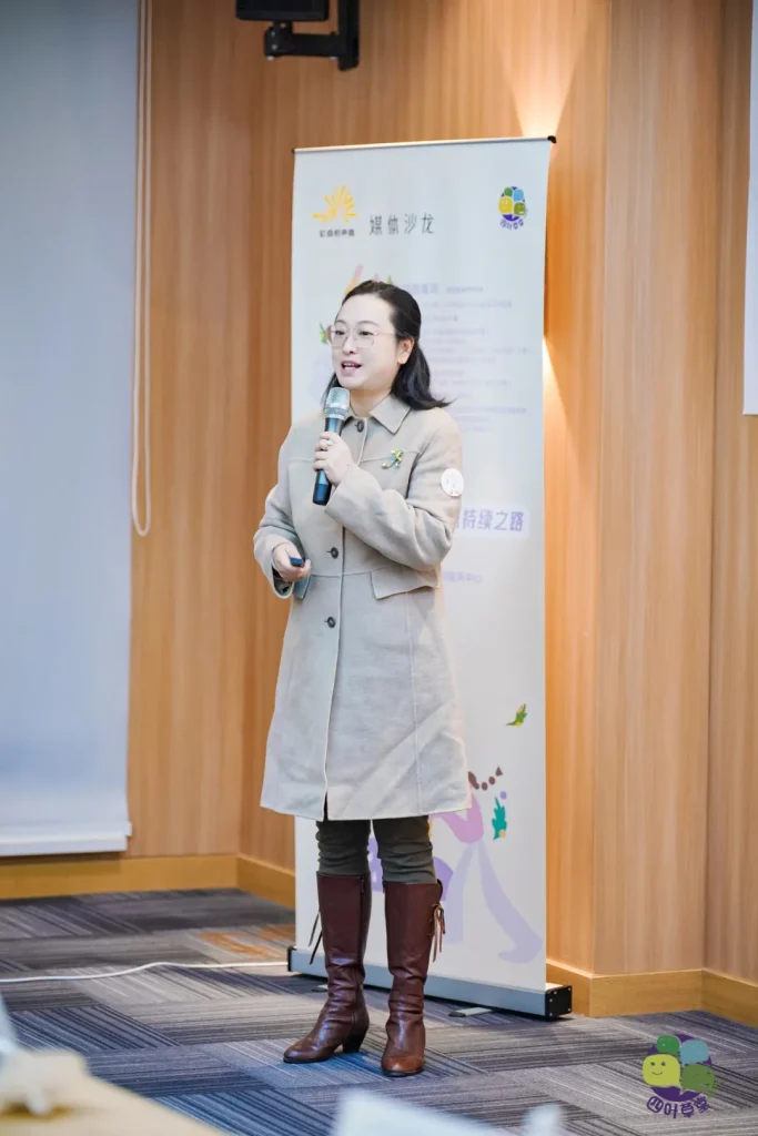 四叶草堂创智农园项目负责人、农园堆肥小组发起人秦颖分享了“创智农园”的缘起和其作为自然科普基地、社区规划师办公室、承载特色规划/建构类青年儿童实践项目等方面的多重价值以及“创智农园共建社”模式。